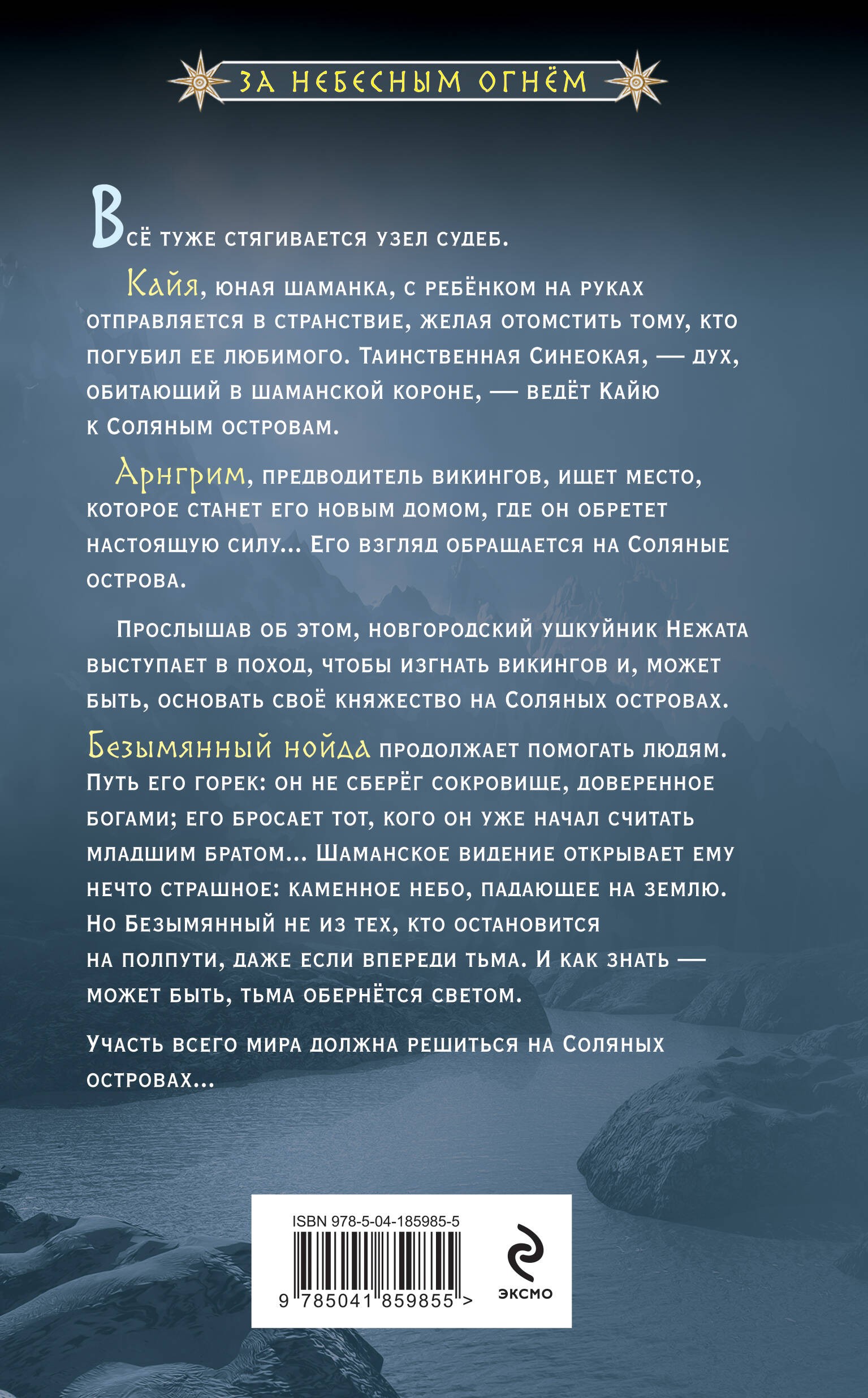 Всё туже стягивается узел судеб.Кайя, юная шаманка, с ребёнком на руках отправляется в странствие, желая отомстить тому, кто погубил ее любимого. Таинственная Синеокая, - дух, обитающий в шаманской короне, - ведёт Кайю к Соляным островам.Арнгрим, предводитель викингов, ищет место, которое станет его новым домом, где он обретет настоящую силу... Его взгляд обращается на Соляные острова. Прослышав об этом, новгородский ушкуйник Нежата выступает в поход, чтобы изгнать викингов и, может быть, основать своё княжество на Соляных островах.Безымянный нойда продолжает помогать людям. Путь его горек: он не сберёг сокровище, доверенное богами; его бросает тот, кого он уже начал считать младшим братом...Шаманское видение открывает ему нечто страшное: каменное небо, падающее на землю. Но Безымянный не из тех, кто остановится на полпути, даже если впереди тьма. И как знать - может быть, тьма обернётся светом. Участь всего мира должна решиться на Соляных островах…Новинка!Заключительная часть трилогии " За небесным огнем"«Хозяин ветра» — славянское фэнтези, в котором девушке-сироте с магическим даром придётся столкнуться с богом морей и хаоса.Мария Семенова – создательница легендарного «Волкодава», которого экранизировали под названием "Волкодав из рода Серых Псов"Сильная героиня, мифы и приключения, узнаваемый дуэт авторов — подарок ценителям славянского фэнтези.