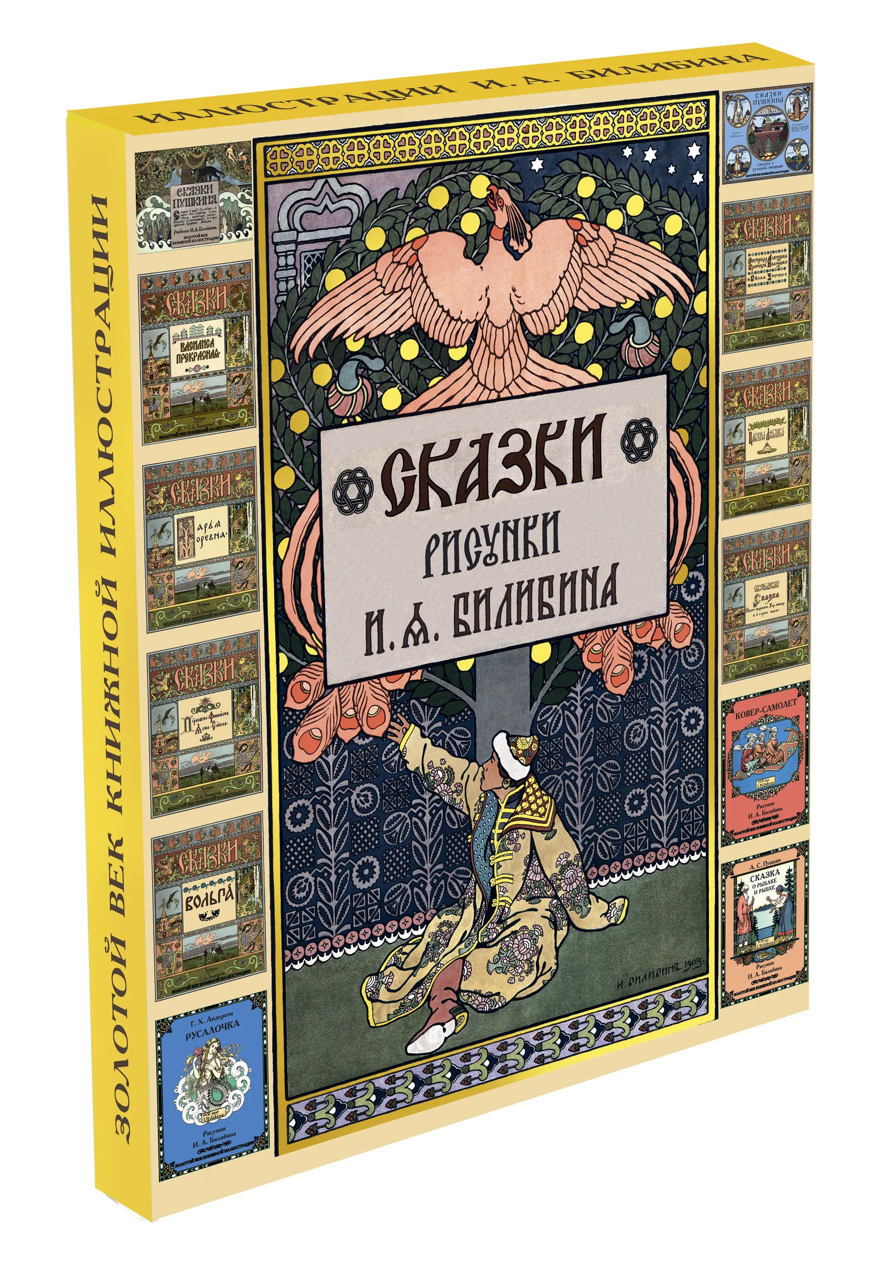 Подарочный набор. Папка c двенадцатью книгами большого формата в мягком переплете на импортной мелованной матовой бумаге 250 гр с дополнительным золотым понтоном(золотой краской) «Сказка о Царе Салтане», «Василиса Прекрасная», «Марья Моревна», «Перышко Финиста Ясна-Сокола», «Вольга», «Русалочка», «Сказка о Золотом Петушке», «Сестрица Аленушка, братец Иванушка. Белая Уточка», «Царевна-Лягушка», «Сказка об Иване-Царевиче, Жар-птице и о сером волке», «Ковер-самолет», «Сказка о рыбаке и рыбке». Рисунки И.Я.Билибина.