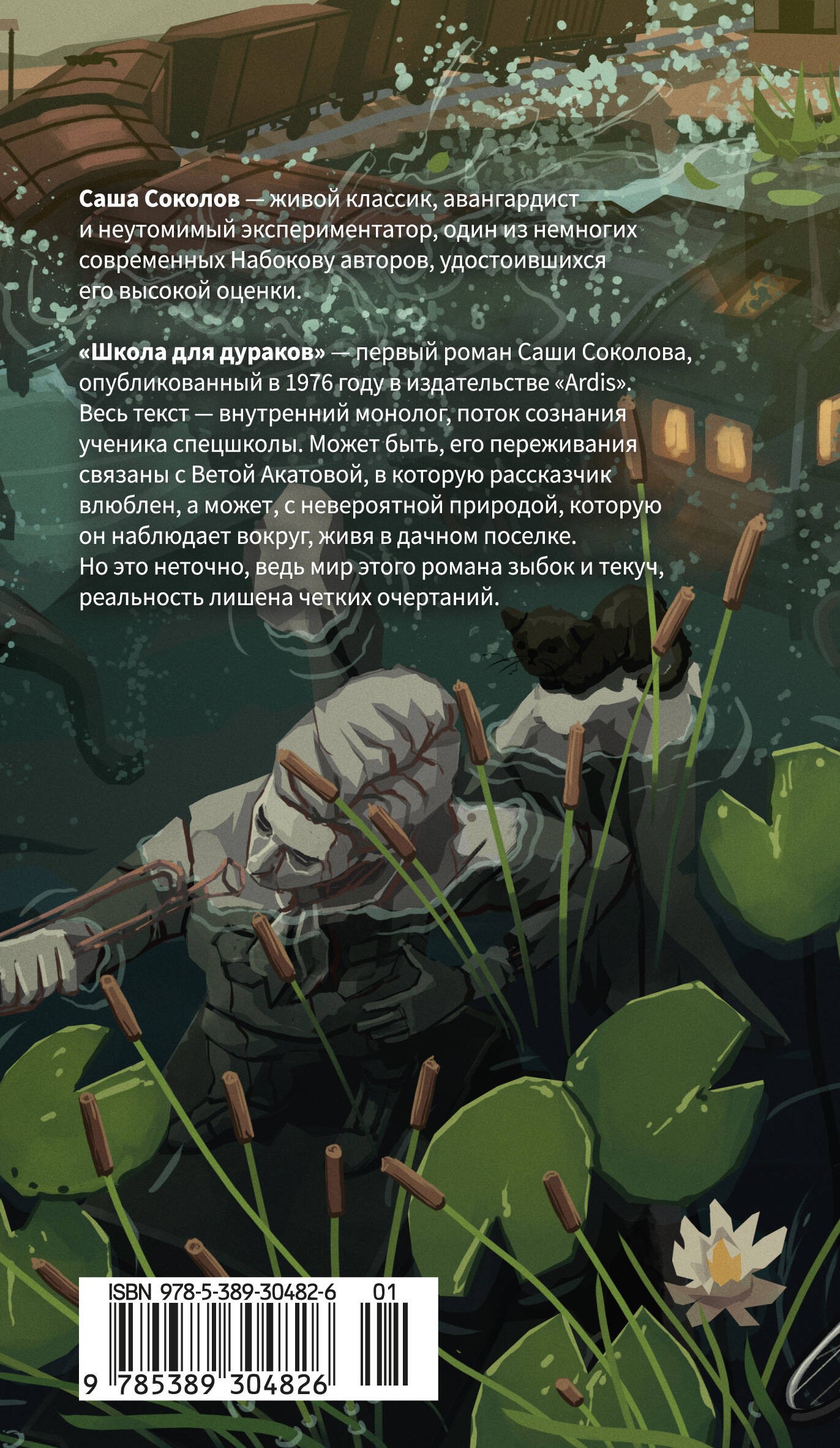 Классика в новом оформленииКнига, понравившаяся НабоковуСаша Соколов — живой классик, авангардист и неутомимый экспериментатор, один из немногих современных Набокову авторов, удостоившихся его высокой оценки. Соколов стремился уйти от «обыденного», «истершегося» языка, и так изобрел собственный, ни на что не похожий стиль, где проза перетекает в поэзию и наоборот, а каждое слово безупречно выверено.«Школа для дураков» — первый роман Саши Соколова, опубликованный в 1976 году в издательстве Ardis. Весь текст — внутренний монолог, поток сознания ученика спецшколы. Может быть, его переживания связаны с Ветой Акатовой, в которую рассказчик влюблен, а может, с невероятной природой, которую он наблюдает вокруг, живя в дачном поселке. Но это неточно, ведь мир этого романа зыбок и текуч, реальность лишена четких очертаний. По определению самого автора, это книга «об утонченном и странном мальчике, страдающем раздвоением личности… который не может примириться с окружающей действительностью» и, приобщаясь к миру взрослых, открывает в нем присутствие любви и смерти.