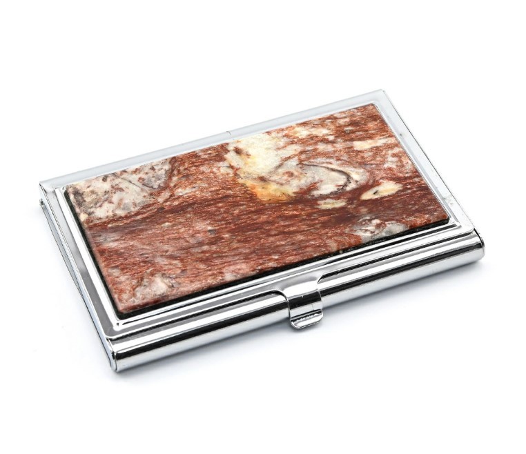 Сувенир Визитница карман с камнем авантюрин серебристая 3723330аи