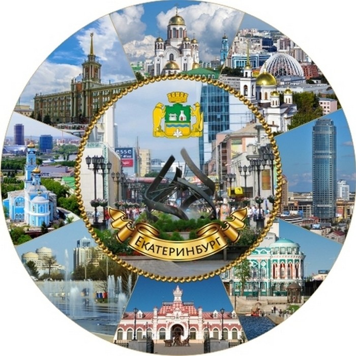 Тарелка декоративная Екатеринбург керамика 21см Коллаж 8 видов Вайнера № 0005