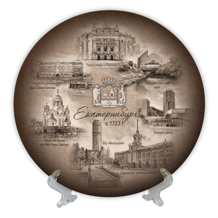 Тарелка декор Екатеринбург керам21см Коллаж сепия №0091