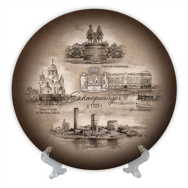 Тарелка декор Екатеринбург керам21см Коллаж сепия 4 видов №0093