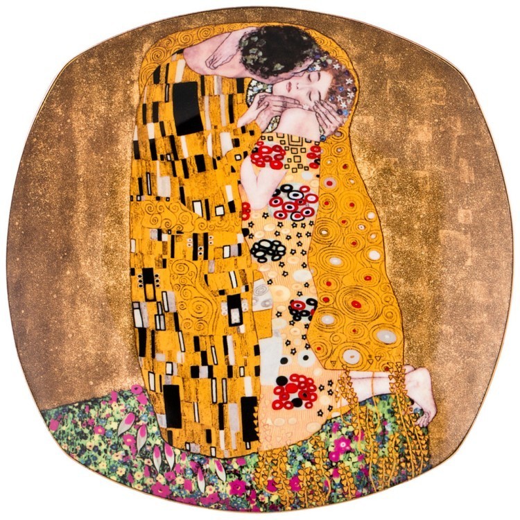 Тарелка фарф квад Поцелуй (Климт) 26см зол 104-513