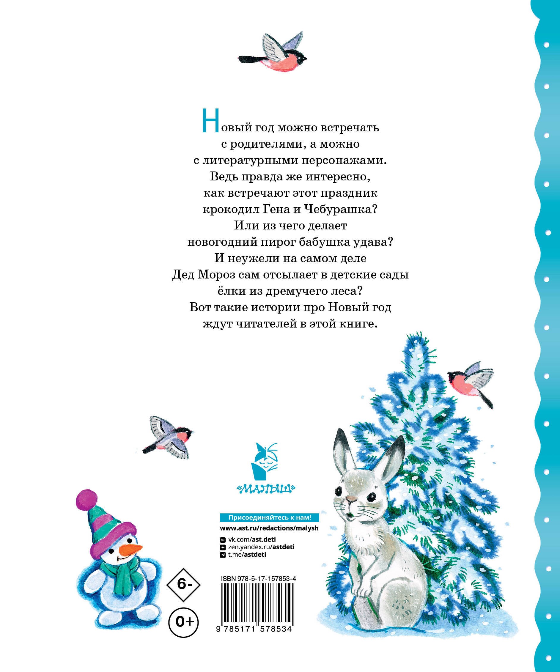 В книгу вошли сказки про Новый год самых известных писателей-сказочников: Владимира Сутеева, Эдуарда Успенского, Григория Остера, Михаила Пляцковского. Какая бывает зима? С кем встречают Новый год Чебурашка и крокодил Гена? Как получить в подарок ёлку и из чего испечь праздничный пирог? Каждый ребёнок должен узнать ответы на эти вопросы.Для дошкольного возраста.