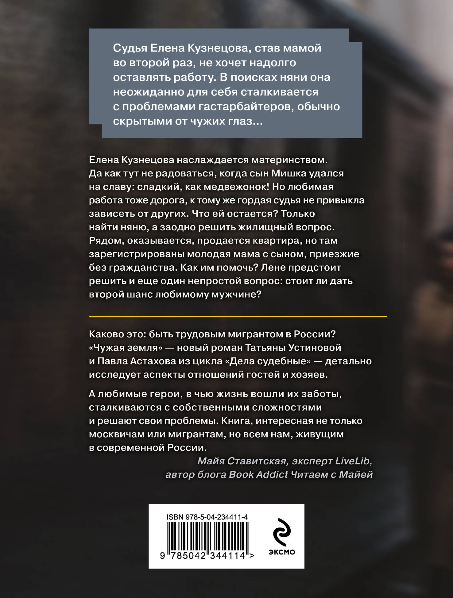 Судья Елена Кузнецова, став мамой во второй раз, не хочет надолго оставлять работу. В поисках няни она неожиданно для себя сталкивается с проблемами гастарбайтеров, обычно скрытыми от чужих глаз...Елена Кузнецова наслаждается материнством. Да как тут не радоваться, когда сын Мишка удался на славу: сладкий, как медвежонок! Но любимая работа тоже дорога, к тому же гордая судья не привыкла зависеть от других. Что ей остается? Только найти няню, а заодно решить жилищный вопрос. Рядом, оказывается, продается квартира, но там зарегистрирована молодая мама с сыном, приезжие без гражданства. Как им помочь? Лене предстоит решить и еще один непростой вопрос: стоит ли дать второй шанс любимому мужчине?Новый остросюжетный роман Татьяны Устиновой и Павла Астахова из авторского цикла «Дела судебные» — это увлекательное чтение, где житейские истории переплетаются с судебными делами.