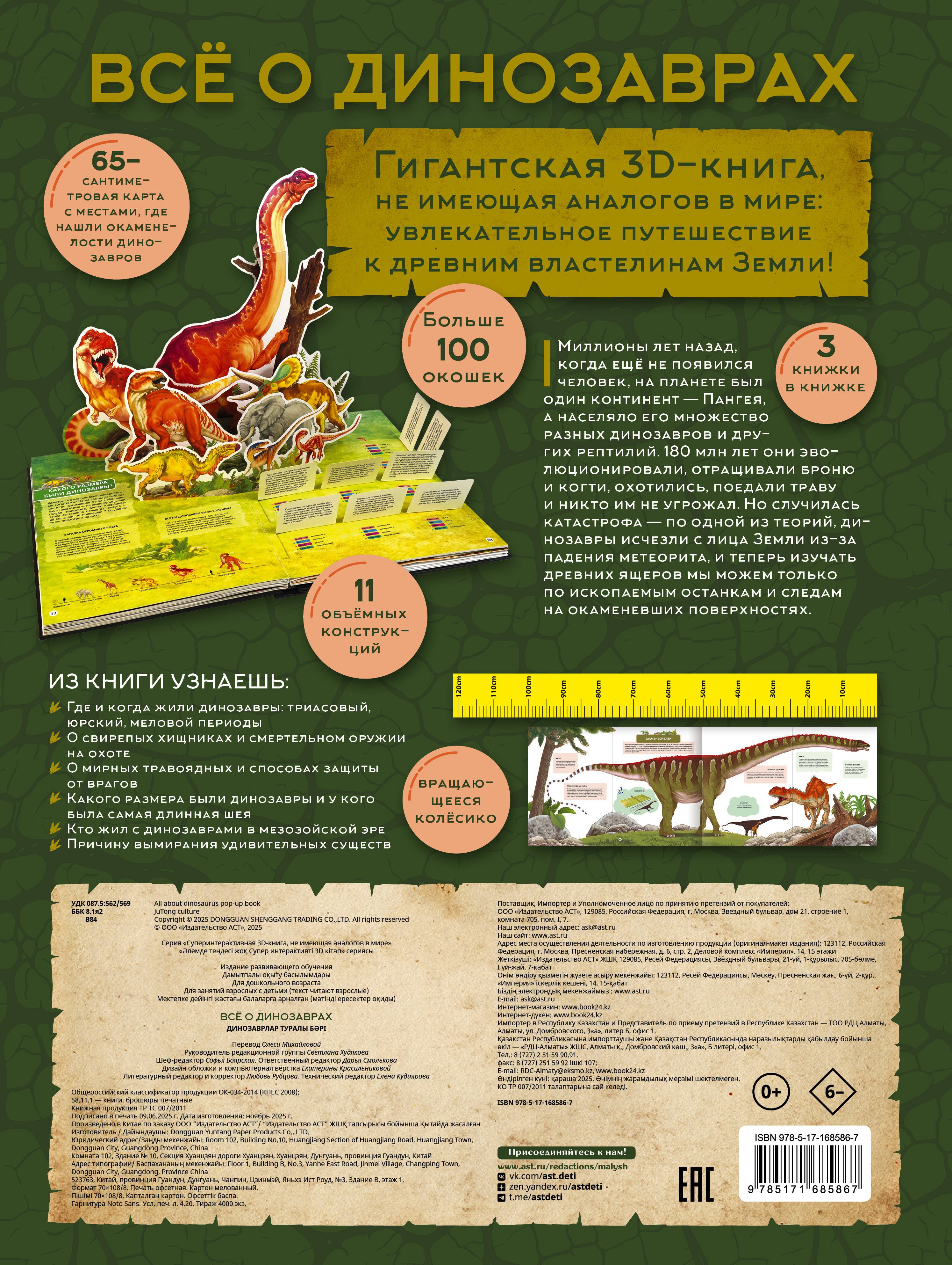 Гигантская 3D-книга, не имеющая аналогов в мире: увлекательное путешествие к древним властелинам Земли!Миллионы лет назад, когда ещё не появился человек, на планете был один континент — Пангея, а населяло его множество разных динозавров и других рептилий. 180 млн лет они эволюционировали, отращивали броню и когти, охотились, поедали траву, и никто им не угрожал. Но случилась катастрофа — по одной из теорий, динозавры исчезли с лица Земли из-за падения метеорита, и теперь изучать древних ящеров мы можем только по ископаемым останкам и следам на окаменевших поверхностях.