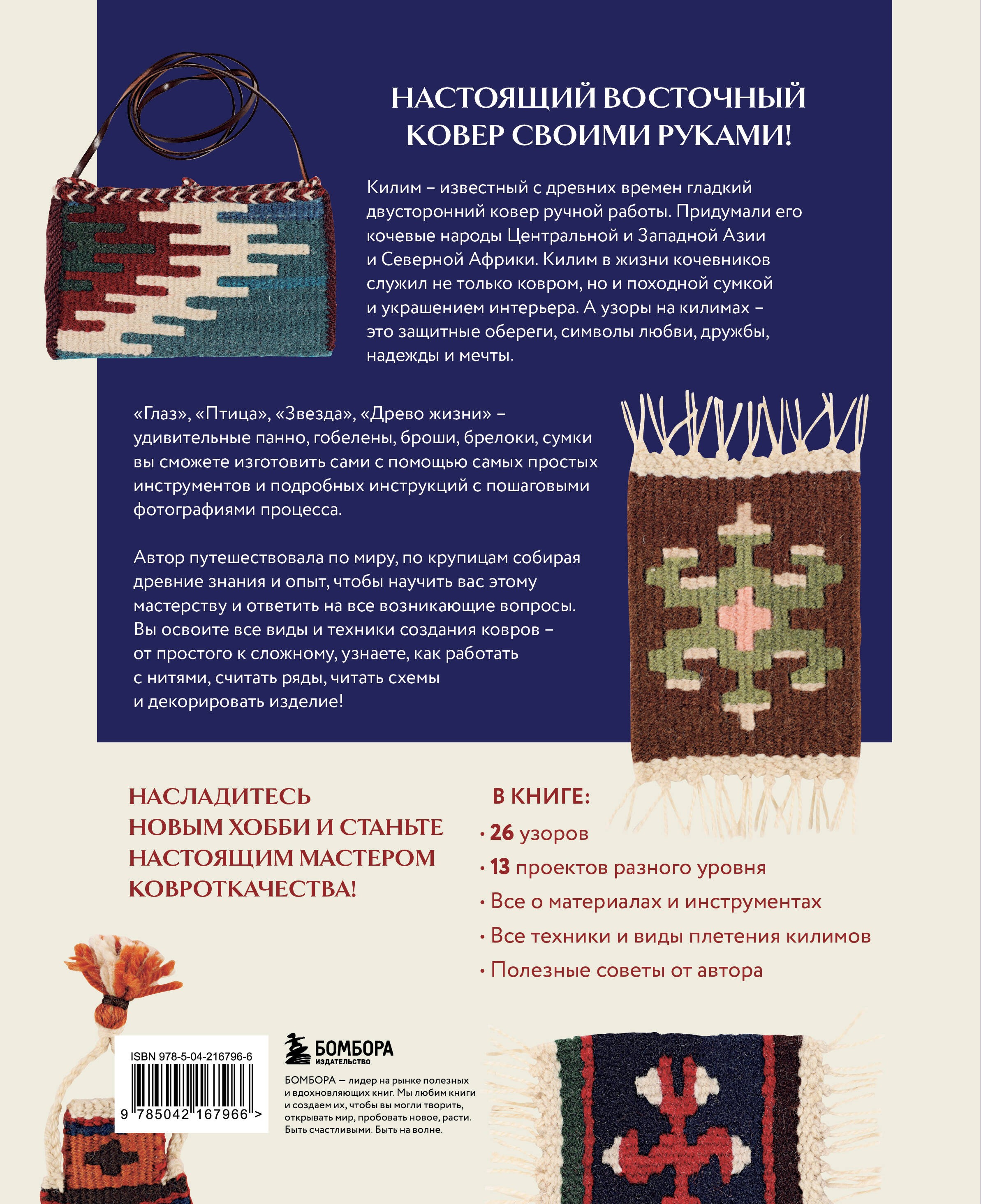 Откройте для себя древнее искусство создания килима — восточного ковра, в каждом узоре которого скрыт глубокий смысл и история. Эта книга научит вас ткать уникальные ковры и украшения своими руками — без специального оборудования и сложных приспособлений.Автор путешествовала по миру, по крупицам собирая древние знания и опыт, чтобы научить вас этому мастерству и ответить на все возникающие вопросы. Вы освоите все виды и техники создания ковров от простого к сложному, узнаете, как работать с нитями, считать ряды, читать схемы и декорировать изделие!В книге:• Все о материалах и инструментах.• Все техники и виды плетения килимов.• 26 аутентичных узоров.• 13 практичных проектов с разным уровнем сложности.• Полезные советы от автора.Насладитесь новым хобби и станьте настоящим мастером ковроткачества!