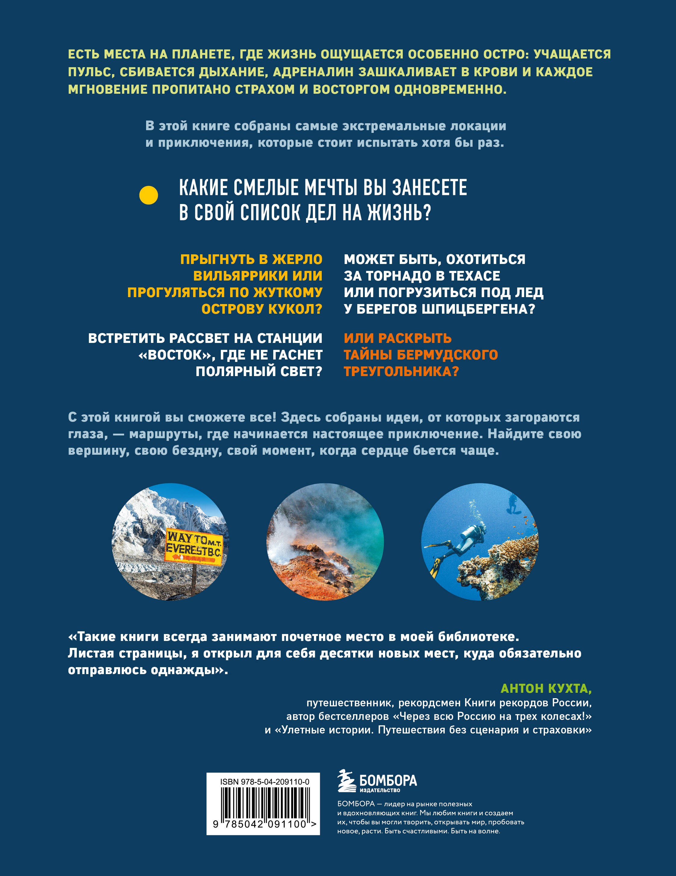 «Самые экстремальные места на планете» — это книга, которая заставляет сердце биться чаще. Она создана для тех, кто умеет мечтать о невозможном и готов вдохновляться смелостью первооткрывателей. На ее страницах оживают вулканы и ледники, мистические острова и бескрайние пустыни, вершины, где проверяется человеческая воля, и глубины, где природа показывает свой грозный характер.Каждая глава — это не просто рассказ о далеких уголках планеты, а путешествие в мир, где страх становится вдохновением, а риск открывает новые горизонты.Эта книга — приглашение выйти за пределы привычного и напоминание о том, что Земля хранит куда больше чудес, чем можно представить.