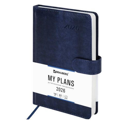 Ежедневник дат 2026г А5 магн заст исккожа синий Legend 117067 Brauberg