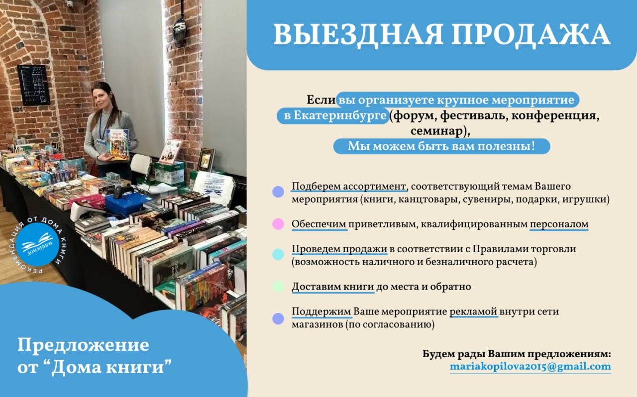 «Дом книги» будет полезен для Вас на крупных мероприятиях в Екатеринбурге и организует выездную продажу книг