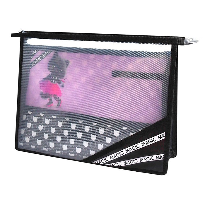 • Папка для школьных тетрадей. КОШЕЧКА В ЮБОЧКЕ. Формат А4. Размер: 33x23 см. Материал: полипропилен. Толщина: 500 мкм. Количество отделений - 1 отделение (-я). Тип застёжки: молния. Отделка: УФ-печать. Цвет: чёрный, сиреневый. Особенности: внутренний разделитель с эластичными держателями для канцелярских принадлежностей.