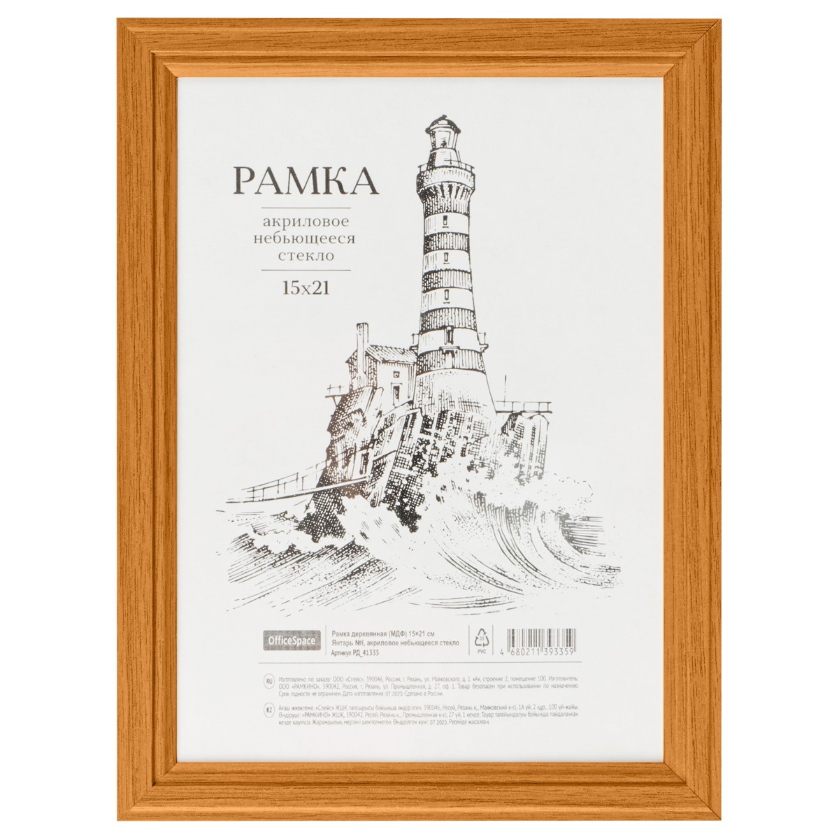 • Рамка OfficeSpace из дерева (МДФ) используется для оформления фотографий, дипломов, сертификатов, постеров, картин и любых других изображений. Подходит как для вертикального, так и для горизонтального размещения. Имеется опорная ножка для установки рамки на столе. Защитная вставка из пластика. Задняя панель из переплетного картона. Рамка упакована в термоусадочную пленку.
