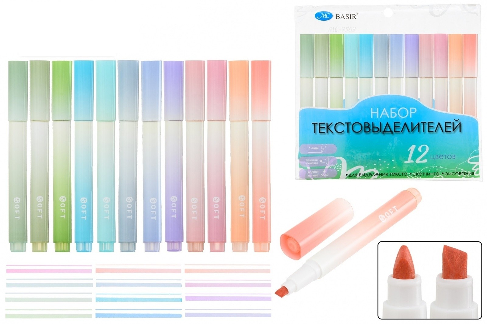 Набор маркеров текст 12 цв пастельн МС-7569 Basir