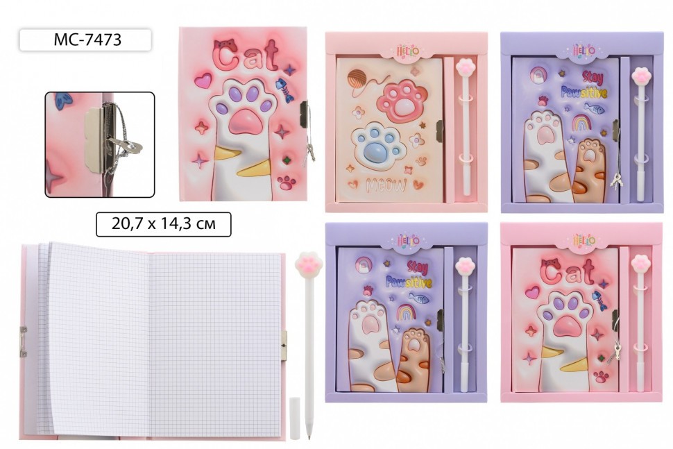 Записная книжка А5 твобл на замочке+ручка гел подарупак Лапки 7473 Basir